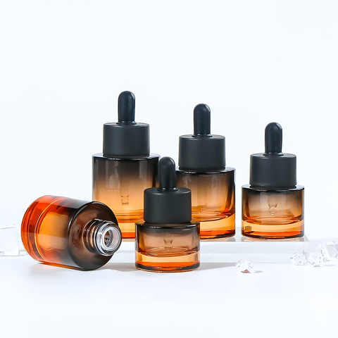 Commercio all'ingrosso 15ml 20ml 30ml di vetro ambrato bottiglia di contagocce olio vuoto cosmetico con forma piatta e tappo a vite